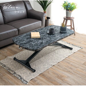 ブラック(石目調)。【素材】・MDF/PVC/スチール。【商品について】・無段階高さ調節。☆便利な昇降式テーブル。