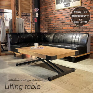 昇降式 リビングテーブル、センターテーブル、食卓、机 綺麗すぎない、粗さも含めて素材そのものの味わいを活かしたシリーズ どこか懐かしさを感じるソフトヴィンテージテイストに仕上げてい...