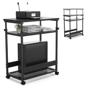 天板高を70cmから95cmまで高さ調節可能、机と高さを揃えることができる天板昇降式のPCラック。キャスター付で移動ラクラク、デスク横のサイドワゴン、プリンターラック・書類ラック等に。