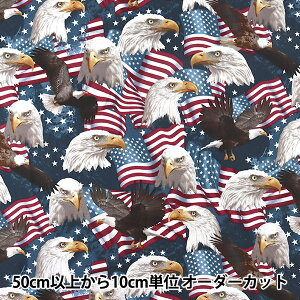 【数量5から】 生地 『インクジェットプリント イーグル C5566-EAGLE』 USAコットン どの角度も獰猛な顔つきの鷲の背景は星条旗! インポートならではのデザインがステキです。 シーチングほ...