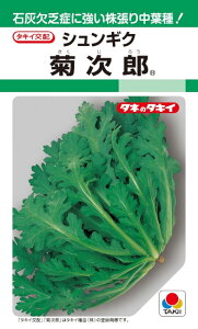 石灰欠乏症に強い株張り中葉種! タキイ種苗 シュンギク 菊次郎 特徴 高温期に問題となる芯腐の発生が少ない。 草姿は立性で、分枝性にすぐれる中葉の株張り種。 葉は濃緑色でやわらかく、香りがよい。 栽培方法...
