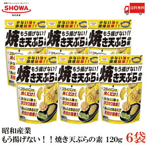 お支払方法が代金引換の場合は別途地域別送料が掛かります。 【商品説明】昭和産業 もう揚げない!! 焼き天ぷらの素 120g×6袋 天ぷら粉のパイオニア昭和産業から 新たな天ぷら革命!! ザクザク食感の新