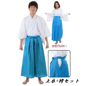着物に似合う時代劇風の和装カラー袴と上衣(白)のセットです。 時代劇衣裳に。巫女や神主など現代の和装に。節分に。 武道 弓道などのスポーツコスプレに。使い方いろいろ! ◆詳細◆ 内容:カラー袴(水色)...