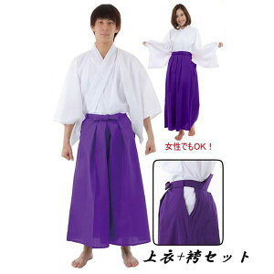 着物に似合う時代劇風の和装カラー袴と上衣(白)のセットです。 時代劇衣裳に。巫女や神主など現代の和装に。節分に。 武道 弓道などのスポーツコスプレに。使い方いろいろ! ◆詳細◆ 内容:カラー袴(紫)・上衣(白)...