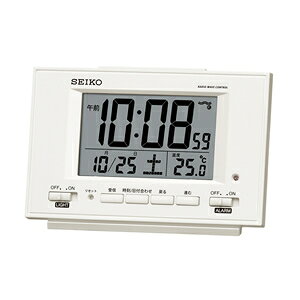 セイコークロック 目覚まし時計 常時点灯 電波 デジタル カレンダー 温度 湿度 表示 夜でも見える