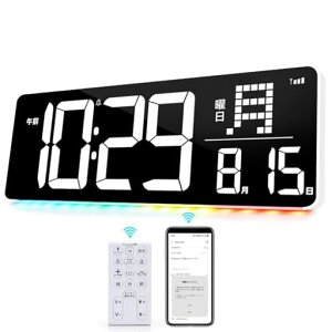 リモートで制御できるデジタル壁掛け時計です 【多機能LEDデジタル壁掛け時計】12/24時間日付表示、華氏/摂氏温度、室内温度計、目覚まし時計機能/時刻メモリー/スヌーズ/常夜灯/ミュート、自動/手動明るさ調整 【使いやすい】最新の大...