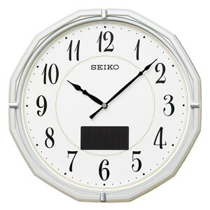 明るさを感知して自動で電源を切り替える、賢いソーラークロック。【仕様】枠材:プラスチック枠(白パールメタリック塗装)前面:ガラスサイズ・重さ:305×305×47mm・800g電池:単3アルカリ乾電池×2機能:ハイブリッドソーラー(光発電セ