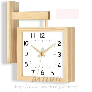 表と裏どちらからも時間が確認できる両面掛け時計。 【素材】:木枠 【電池式】:単3乾電池(別売り) 【取り付け超簡単】背面に取り付け用の金具と取り付け用の無痕フックも付属しておりますので、到着してすぐ飾ることができるのも嬉しい