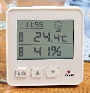 不快なお部屋を顔表示とランプ/ブザーで分かりやすくお知らせ!お部屋の温度・湿度がひと目で分かるデジタル温湿度計です。測定した温度と湿度が労働安全衛生法の事務所衛生基準規則が定める努力目標(温度:17〜28℃、湿度:40〜70%)を満