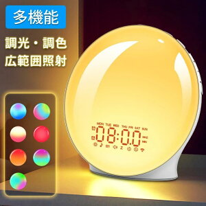 【多機能目覚ましライト】(1)日の出日の入りライト(2)睡眠補助モード(3)デスクライト(4)カレンダー(5)目覚まし時計(6)12/24H時間表示(7)℃/?温度表示(8)明るさ3段階調節(9)10種音楽音声(10)2組アラーム...