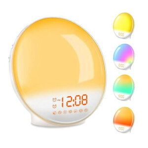 HUO JI 目覚まし時計 光 目覚ましライト 日の出/日の入りモード 太陽光 平日/休日アラーム スヌーズ機能 FMラジオ カウントダウン 大音量 多機能 置き時計 デジタル時計 自然音 16段階音量調節...