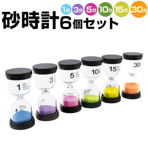 かわいい砂時計です!【1分/3分/5分/10分/15分/30分】の6個セット!キッチンのカウンターや棚などちょっと飾っておくだけでも存在感があります。時間はかたちにして見えないものですが、砂時計は見ることができ