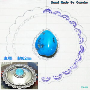 シンプル ゴージャス ターコイズ コンチョ 大きめ シルバーコンチョ ボタン ボルト止め 【直径 約62mm】【受注製作】 アリゾナ州産出のスリーピング ビューティ ターコイズ(トルコ石) 不定形カットでやや濃いめのスカイブルーが一際目