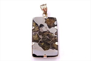 トップ部分2.3×1.4×0.2cm 金具:K14(14金) 1822年にチリで発見されたイミラックというパラサイト隕石です。 パラサイトと呼ばれる隕石で、金属の光沢の中にグリーンのカンラン石が映えて非常に美しいです。 あとこちらは表...