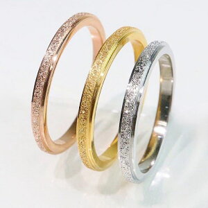 シンプルなリングの真ん中にグリッター加工を施したデザインがあるお洒落なリング。 グリッター加工デザインが上品な輝きを引き出し、華やかな印象にしてくれます。 素材は金属アレルギーを起こしにくいステンレスを使用しており、金