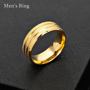 シンプルなゴールドカラーの指輪。砂目加工のラインがおしゃれなデザイン。プレゼントにもオススメです?【サイズについて】画像をご参照ください。【素材について】合金【カラーについて】生産ロットにより柄の出方や色の濃淡が異なる