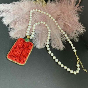 ・カテゴリ: ネックレス・スタイル: 個性・カラー: レッド・周長: 51cm〜60cm・パール種類: 淡水パール・パール形状: セミラウンド・パール直径: 7mm〜8mm未満・金具素材: 銅合金・ペンダント素材: 朱砂・ペンダント:...