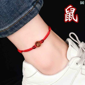 赤 縄 開運 アンクレット 十二支 辰 砂 転 写 ビーズ 男女 カップル 守る 動物 年 ブレスレット アクセサリー バングル材質:辰砂
