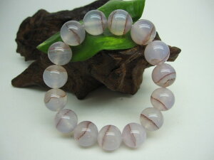 【ブレスレット】 ラベンダーカルセドニー【朱砂入り】 ☆商品情報☆ 石サイズ:Φ14±0.2mm 粒数:15粒 手首周り:約17cm 原産地:マダガスカル ※形状やサイズのばらつき、表面や穴周りにキズや凹み等があります。 ※照明等の関...