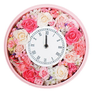 特徴人気のバラのプリザーブドフラワーをメインに使用した花時計。 生花に近いつやのある質感と、高級な鮮やかな発色がインテリアとして部屋をパッと明るくします。 新築祝いやブライダルギフト、記念日など、特別な日の贈り物に選ば