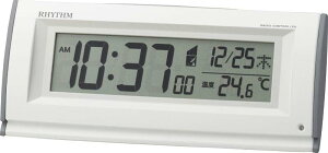 TRUSCORHYTHM リズム 電波 目覚まし時計 温度計付き 暗所自動点灯機能 白。特長●便利な夜間自動点灯ライト付き電波時計です。