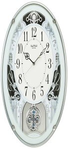 450×345×81mm・2.0kg。●緑メタリック色(白)。●プラスチック枠(PS)。●風防:ガラス製。電波掛時計(アミュージングタイプ)。飾り振子付。留め飾り付。毎正時に1曲、下記順番でメロディが流れます。(全18曲/A...