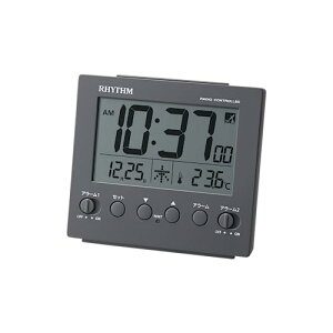 ◆商品名:リズム(RHYTHM) 目覚まし時計 電波時計 デジタル 電子音 ダブル アラーム (スヌーズ 付) 温度計 ライト カレンダー ダークグレー 9.1×10×4.5cm フィットウェーブ D236...