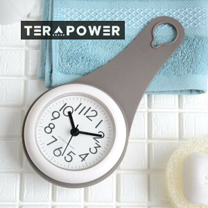 通りの使い方ができる防滴時計br●キッチン、浴室、洗面所など水周りでも安心して使用できる防滴仕様のアナログ式時計。●「フックに引っかける」「ポールに巻きつける」の2 通りの設置方法に対応。●時計のフック部分はやわらかい