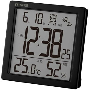 ◆商品名:MAG(マグ) 目覚まし時計 置き時計 デジタル 温度計 湿度計 温湿度計 カレンダー 電子音 アラーム スヌーズ ライト ブラック カッシーニ AT-726 BK-Z ノア精密・本体サイズ...