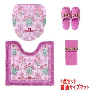 ●北欧おしゃれな人気柄 普通サイズトイレマット、ドレニモふたカバー、ペーパーホルダーカバー、スリッパの4点セットです。 流れるような曲線の柄が特徴的なアール・ヌーボのデザインを取り入れたトイレシリーズです。 フェミニン過