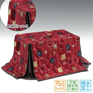 [サイズ(cm)] 掛布団:W240×D225 [仕様] ダイニングこたつ用布団 天板:90×75用 撥水加工 アルミシート入り 天板固定用穴あり 収納ポケット付き (ご注意)--あらかじめ、ご