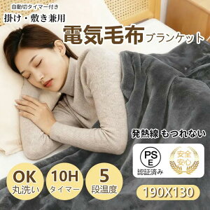 電気毛布 掛敷兼用 大判190×130cm│PSE認証・3分速暖│5段温度・10hタイマー│丸洗いOK&省エネ│頭寒足熱配線・ダニ退治