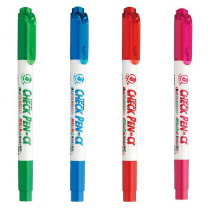 キレイに仕上がるチェックペン「チェックペン-α(アルファ)」が新登場! 【チェックペンアルファの秘密】 キレイに仕上がるには理由がある。 理由1:「明るい色」/だから、文字が読みやすい。 理由2:「裏面ににじみにくい」/だから、キレイで