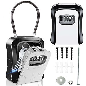 キーボックス 屋外 ダイヤル式【大容量収納】セキュリティボックス 大きめ 鍵収納 ワイヤータイプ 4桁暗証番号 壁掛け 鍵ボックス キー収納 防犯 防水 盗難防止 玄関 車 工事現場 倉庫 会社 アウトドア...