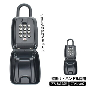 壁掛けとハンドルの両用が可能な設計で、アルミ合金製のため非常に丈夫です。防犯対策として、最大12桁の暗証番号を設定できるプッシュ式を採用しており、貴重品や鍵の安全な保管に最適です。自宅やオフィス、事