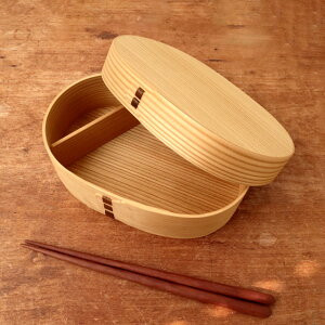 小判型の曲げわっぱのお弁当箱です。 昔からある形で、今でも多くの人に愛されている商品です。 日本三大美林のひとつに数えられる秋田杉の均一で美しい木目を活かした国指定の伝統的工芸品です。 明るく優雅な風合いと軽量でありなが