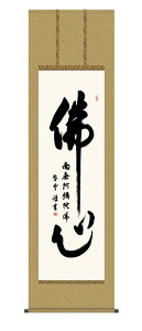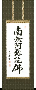 徳高い墨痕が、仏事を格調高く引き立たせる逸品 これを唱えることを念仏といい、阿弥陀様におすがりし正念すれば必ず来世は極楽浄土へと往生することを得るといわれる心の財産です。 ●幅44.5×高さ164cm ●本紙・・・新絹本 ●軸先・・・
