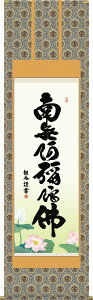 【送料無料】丁寧に仕上げられた日本製の掛軸。勢いのある筆さばきで墨痕鮮やかにしたためた、日々の平安を授けてくれる名号作品です。阿弥陀如来の慈愛が満ちあふれるありがたい六文字です。【あすつく対象外商品】【お取り寄せ商品、10〜15営業日...