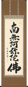 仏書掛け軸で安らかな空間を創造する!一幅の掛軸が床の間を演出いたします! 親鸞・蓮如の時代からご本尊の代わりと崇められてきた六文字。格調高い書風にふさわしい落ち着いた趣の表装に仕立ててお届けいたします...