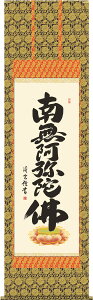 徳高い墨痕が、仏事を格調高く引き立たせる逸品これを唱えることを念仏といい、阿弥陀様におすがりし正念すれば必ず来世は極楽浄土へと往生することを得るといわれる心の財産です。 ●幅54.5×高さ190cm ●本紙・・・新絹本 ●軸先・・・