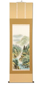 幽山水明(ゆうざんすいめい)深山に大気澄みわたり、生い茂る木々が影を写しながら穏やかに流れるせせらぎ。幽玄の世界をあますところなく表現した秀逸な山水画作品です。正絹緞子本表装高精彩巧芸画〜手彩入り〜サイズ:幅54.5×高さ約19