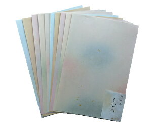 仮名料紙。主に練習用として人気です。 半懐紙判と全懐紙がございます。お選びください。 作品用にも使えます。 半懐紙=50枚入り(5色×各10枚入) 全懐紙=25枚入(5色×5枚入)