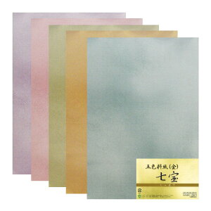 寸法:半懐紙判(約250×365mm) 枚数:5色×5枚 色:青緑・黄茶・抹茶・紅茶・赤紫 特徴:平安時代から伝わる伝統的な古典模様を5色セットにしています。 この料紙には、胡粉・膠で加工が施してあります...