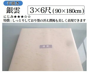 ★弊社一押し!高級書道画仙紙 『銀雲 3×6尺 (50枚)』 サイズ : 90 ×180(センチ) 墨色の冴え、滲みも美しく、濃墨淡墨どちらにもおススメの画仙紙です。 〔配 送〕 ※この商品はゆうパックにて発送致します...