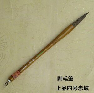 【用途】半紙漢字4字〜6字書き 楷書、行書向き 主原料:鼬毛、天尾 鋒の色:赤毛 鋒の寸法:内径約10x52mm 軸の寸法:斑紋竹外形約11x全長220mm 対象者:学生・大人向き