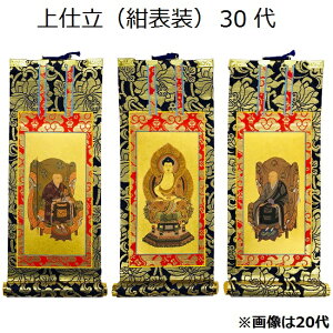 【商品名】 3枚セット 本尊×1 脇掛×2 【サイズ】 (外寸)200代:軸幅33cm×高さ77cm(1枚あたり) (手作り品のため若干サイズが異なる場合がございます) 【その他のサイズ】 極豆代:軸幅