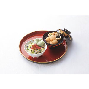 香ばしい最中種に滋味調整した具材を合わせたお茶漬と京野菜お吸物の詰合せ。お茶・お湯を入れるだけで簡単に上品な京風お茶漬・お吸物になります。●お茶漬(賀茂なすしば漬け・聖護院だいこん漬け・梅×各1)、お吸物(九条ねぎ(ゆ