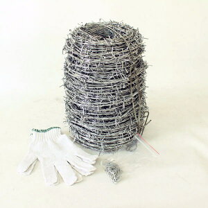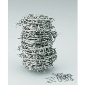 線径:#14(1.8mm) ・長さ:100m ・重量:9.50kg 付属品:ステープル100個及び軍手1双入り [ 有刺鉄線 鬼針 バーブドワイヤー 犬釘 バラ線 針金...