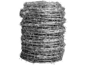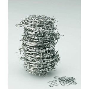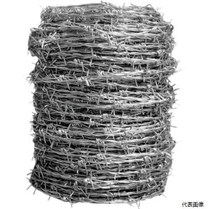 バーブ(有刺鉄線) #14 マンション・学校・住宅・店舗などの塀や壁からの侵入対策に使用 ・材質:鉄 ・入数:1巻 ・寸法:14#×100m ・重量:7.50 kg (ステープル100個及び軍手1双入り)...