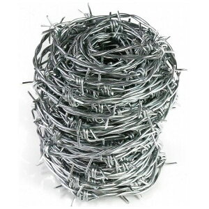 【商品スペック】 特長 ●針金にトゲ状の針金を取り付けてた鉄線です。●鉄材にユニクロメッキを施した商品です。 用途 ●保護したい区画に木杭などを打ち込み、そこに張り巡らせて使用。●人の侵入や鳥獣避けに用いられます。 仕